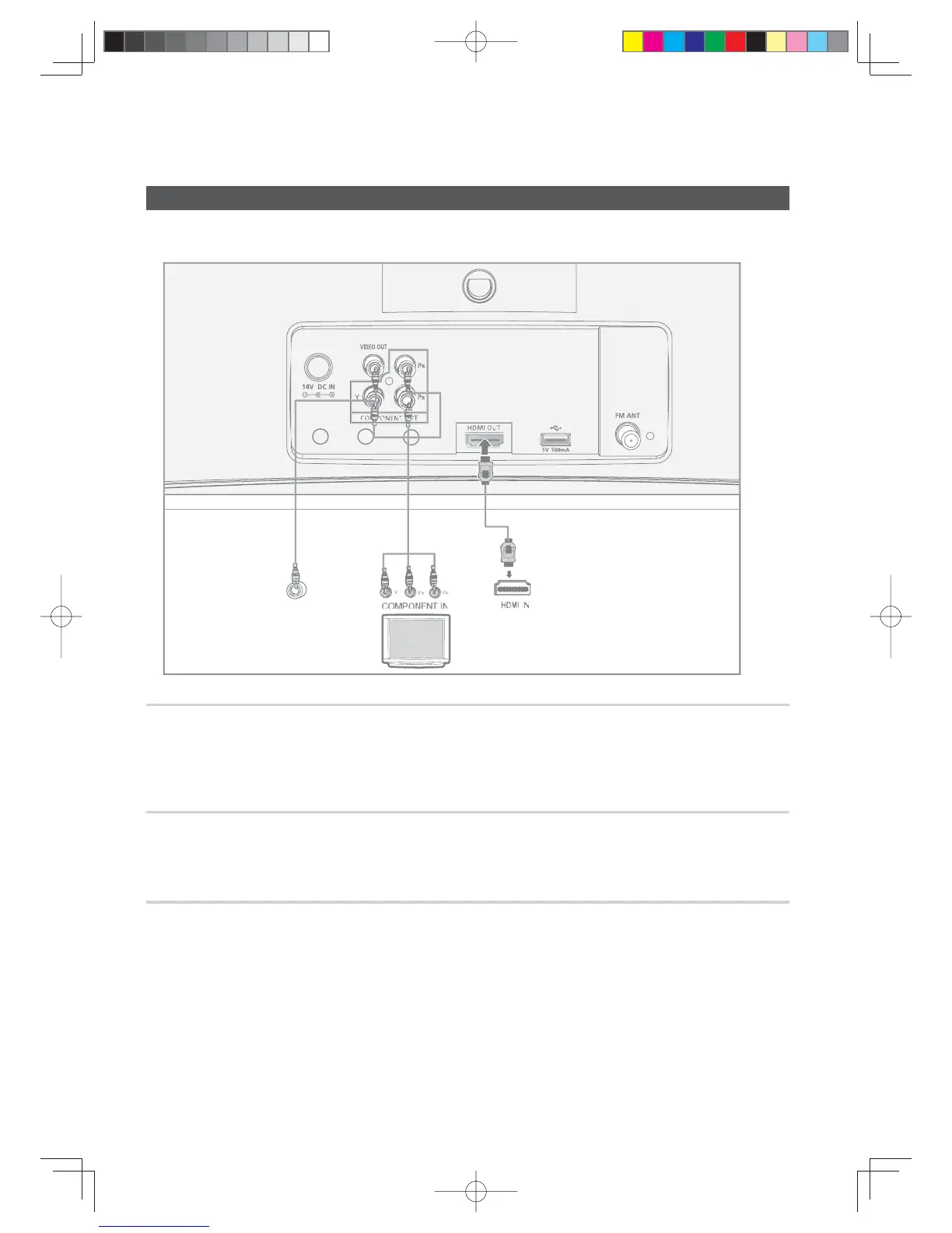 from the COMPONENT OUT (Pr, Pb and Y) Jacks on the back of the product to the Component Video Input