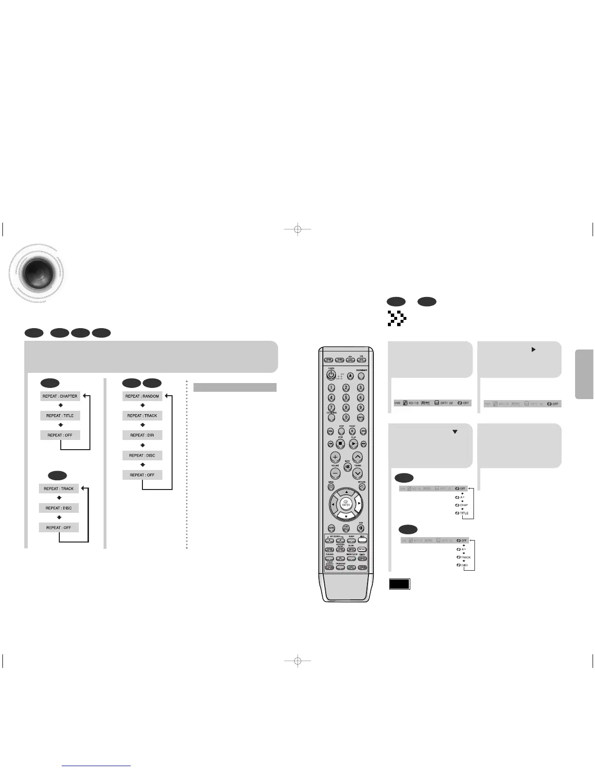 Repeat playback allows you to repeatedly play a chapter, title, track (song), or directory (MP3 file).