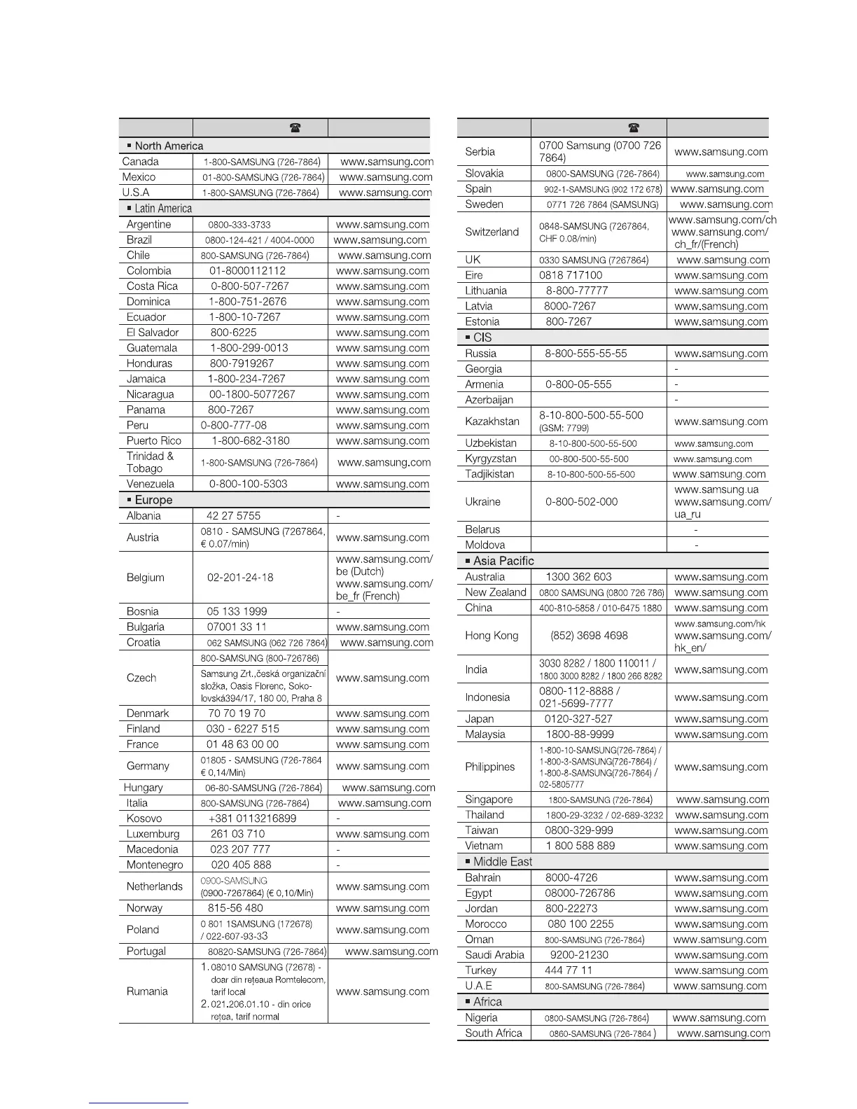 If you have any questions or comments relating to Samsung products, please contact the SAMSUNG customer care centre.