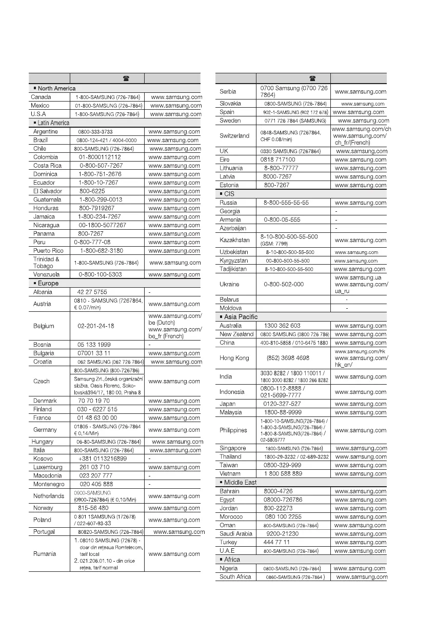 If you have any questions or comments relating to Samsung products, please contact the SAMSUNG customer care centre.