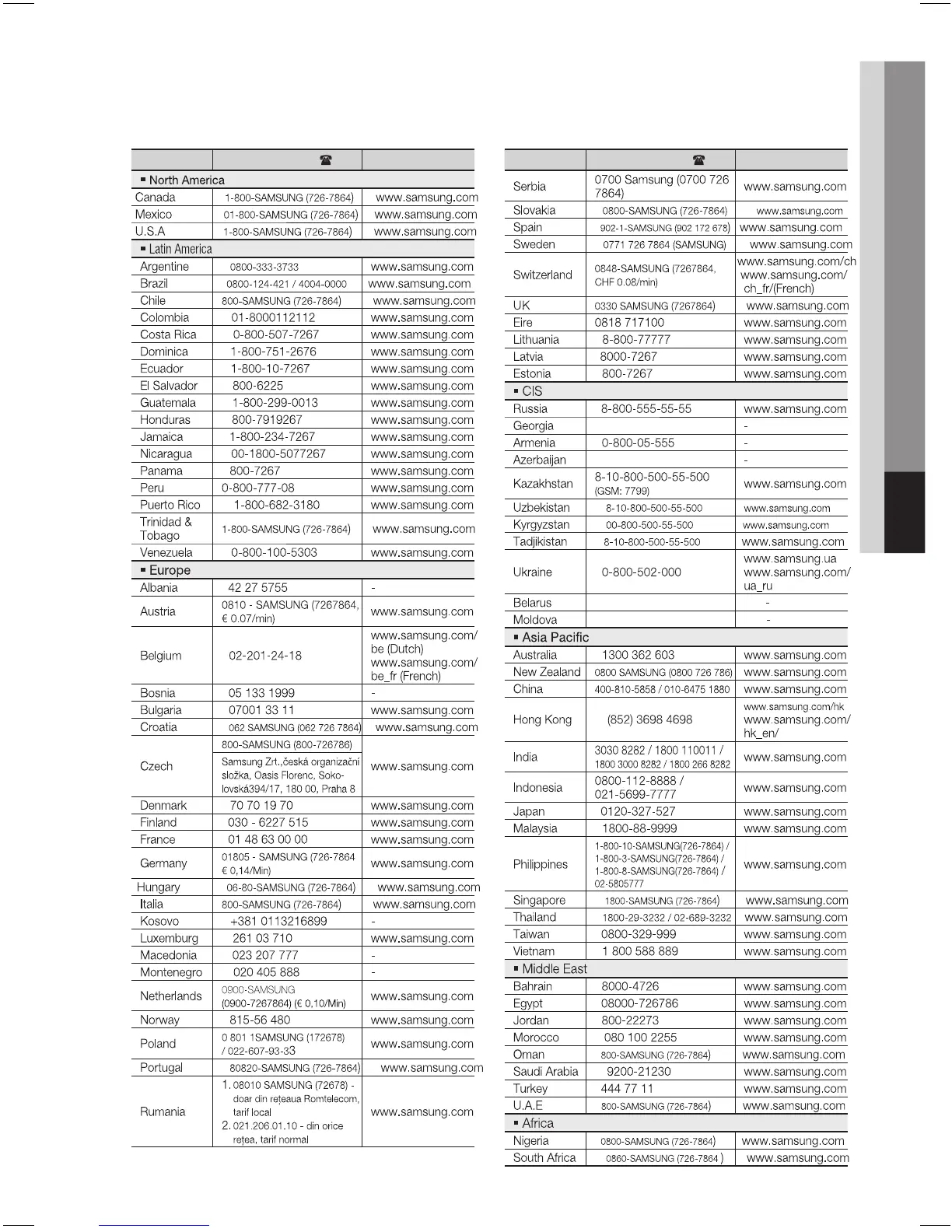 Contact SAMSUNG WORLD WIDE