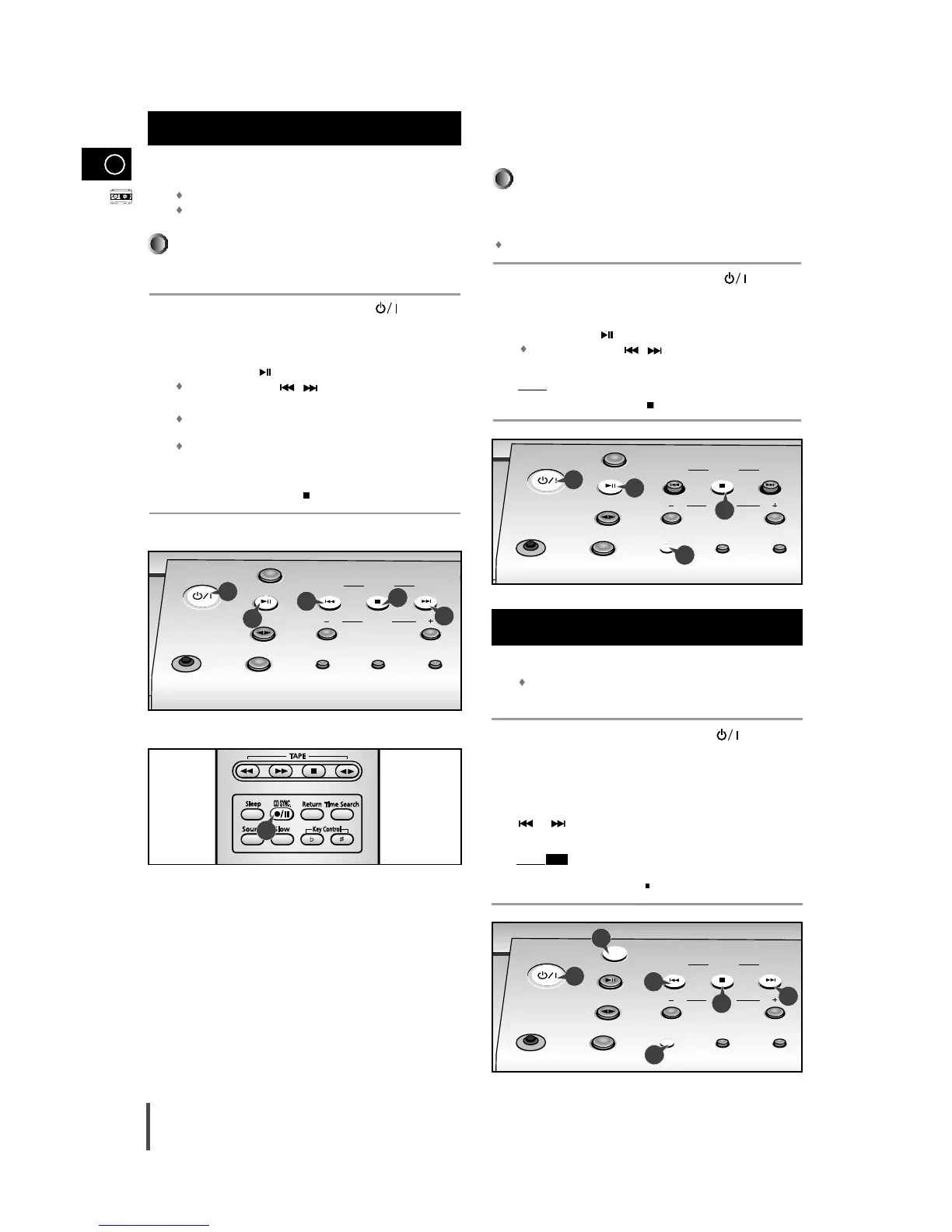 Use the CD selection ( , ) buttons to select the desired song.