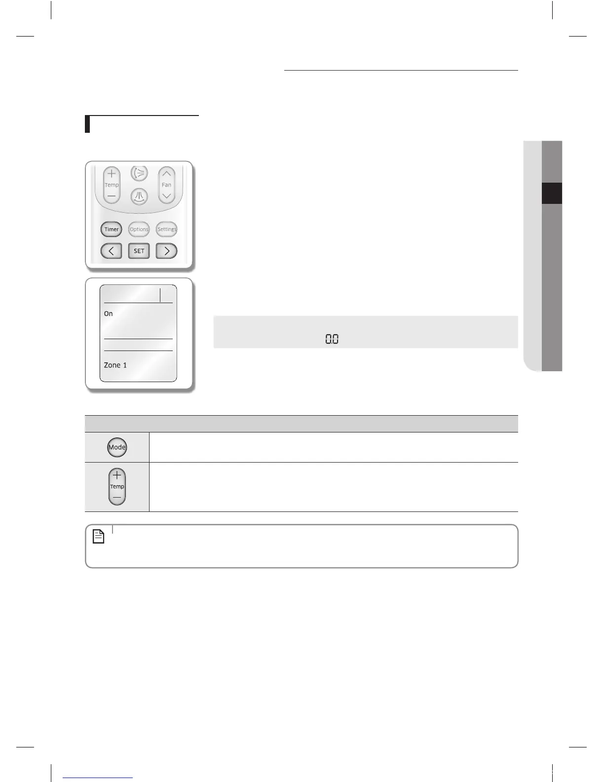 - (On) indicator and the set time of the timer will be displayed on the remote