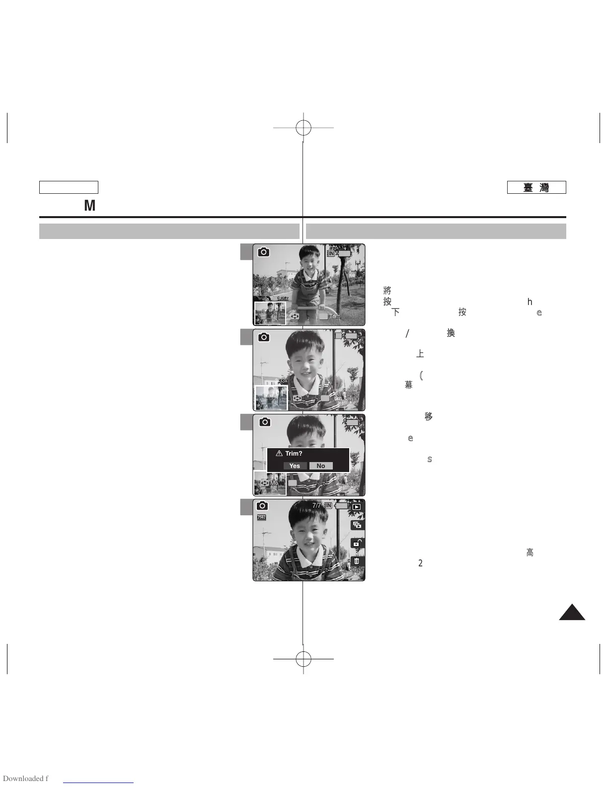 若若選選擇擇 <<YYeess>>,,裁裁剪剪的的影影像像將將會會儲儲存存然然後後在在螢螢幕幕