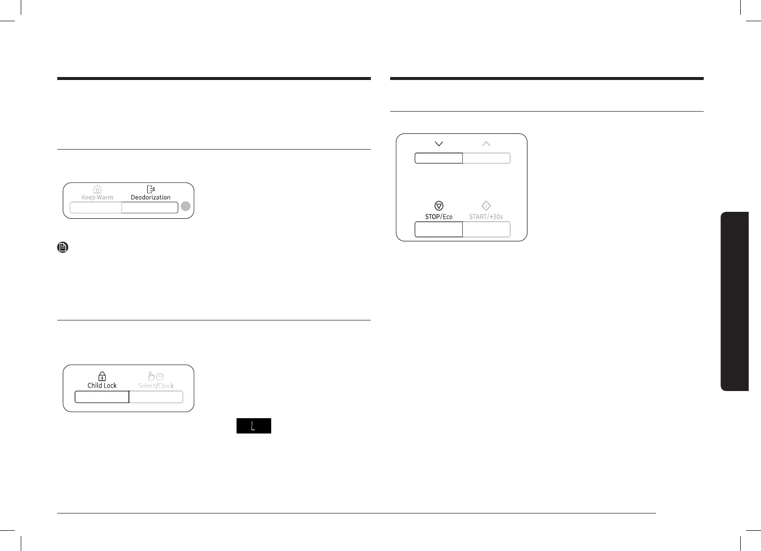 • A szagmentesítési időtartam hossza 5 perc. Ez a START/+30s (INDÍTÁS/+30 mp) gomb