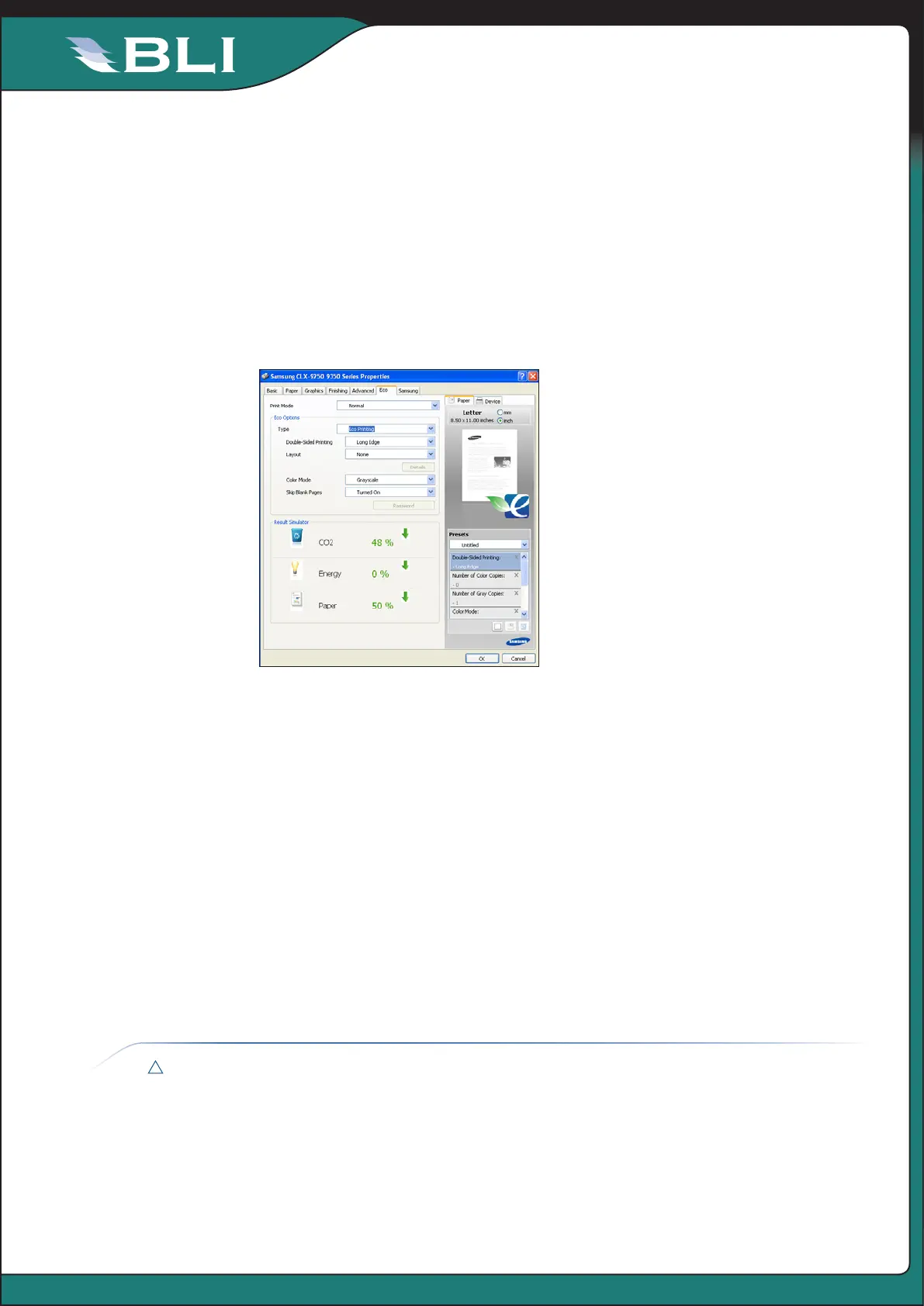 When users prepare to print a job, they can select Eco Mode to see the paper and