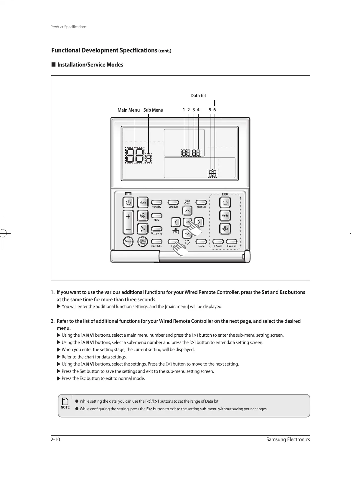 1. If you want to use the various additional functions for your Wired Remote Controller, press the Set and Esc buttons