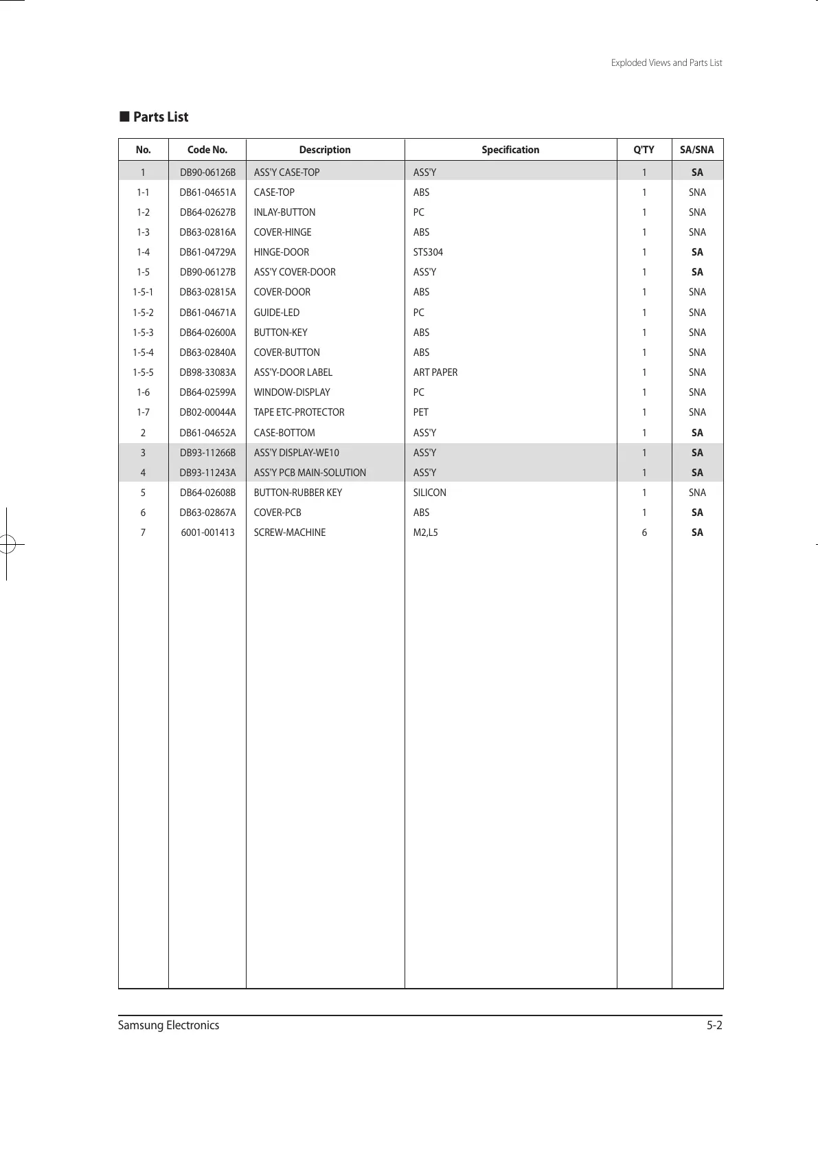 1-5-1 DB63-02815A COVER-DOOR ABS 1 SNA