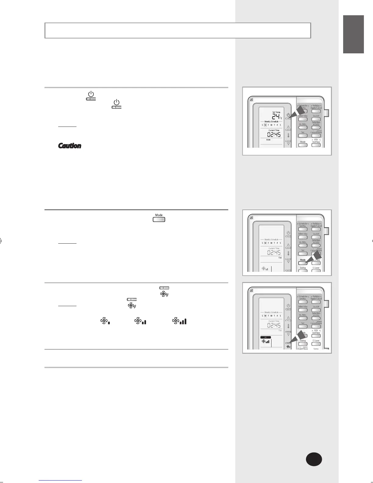 Select the fan speed by pressing the button.