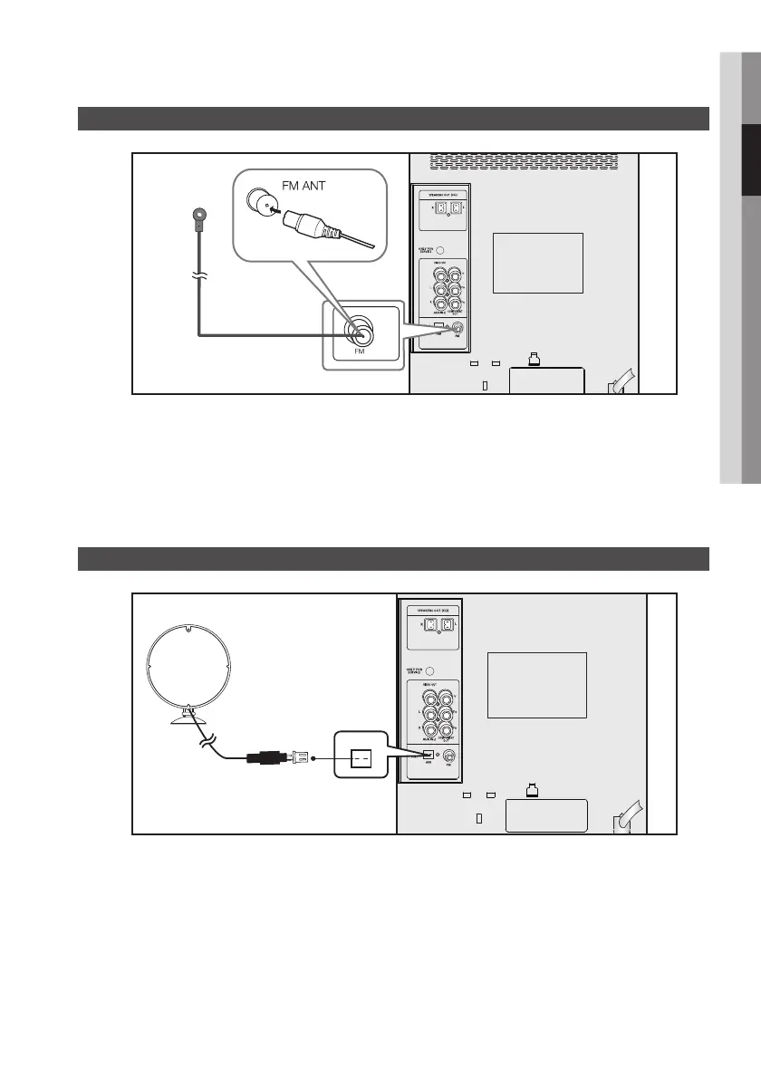 Plug the connector on the AM antenna supplied into the AM Terminal on the rear of the system.1.