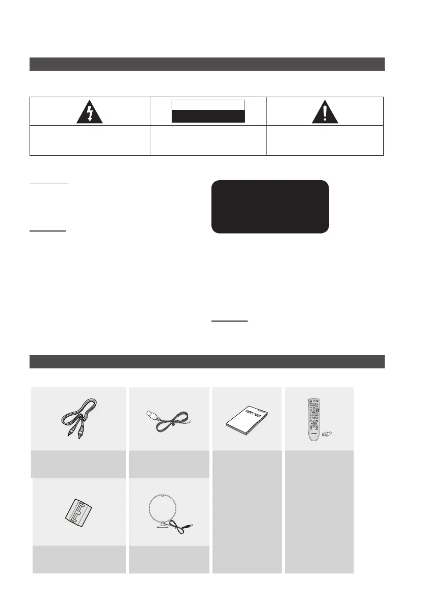 TO REDUCE THE RISK OF ELECTRIC SHOCK, DO NOT REMOVE THE COVER(OR BACK). NO USER-SERVICEABLE PARTS ARE INSIDE. REFER