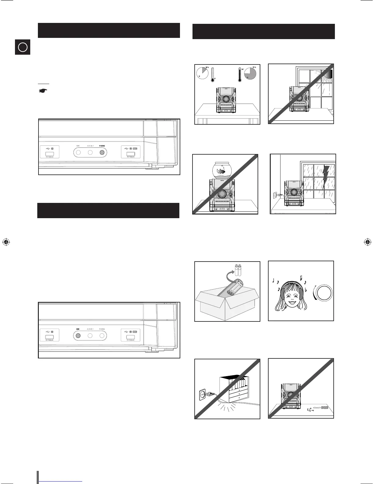 You can connect a set of headphones to your mini-compact system so