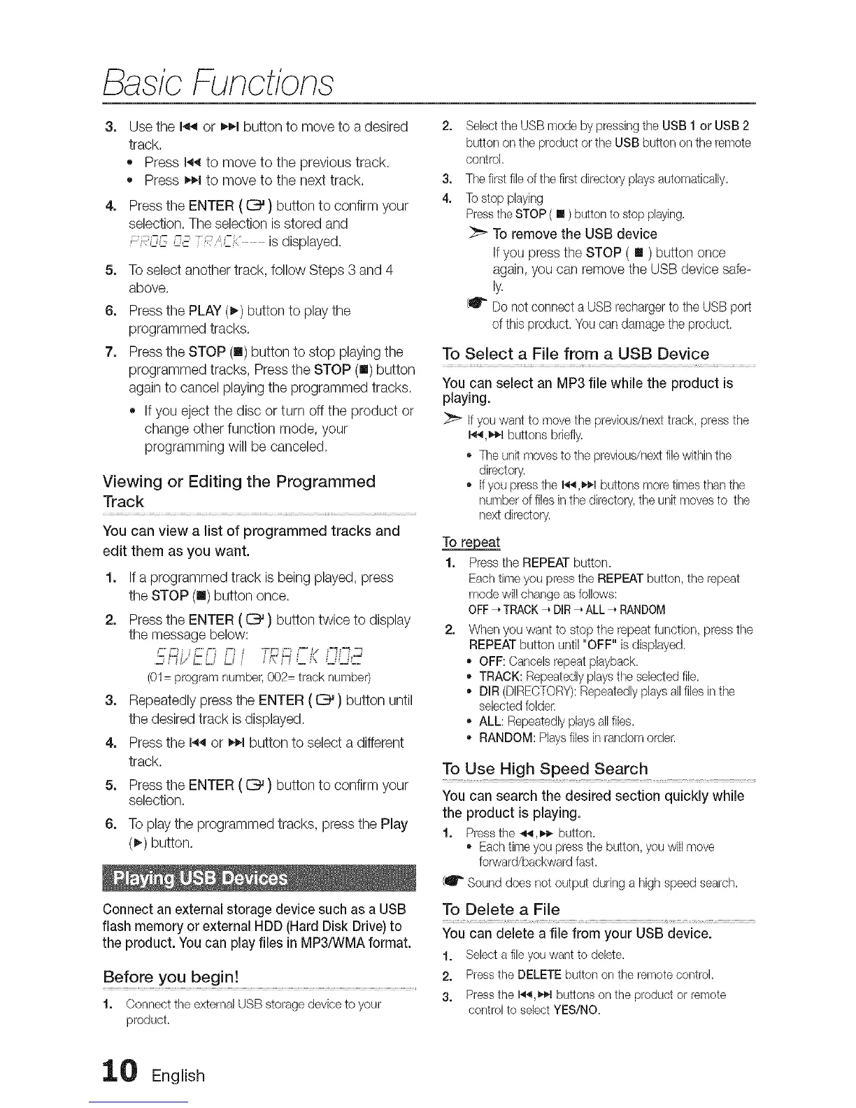 programmed tracks, Pressthe STOP (m)button