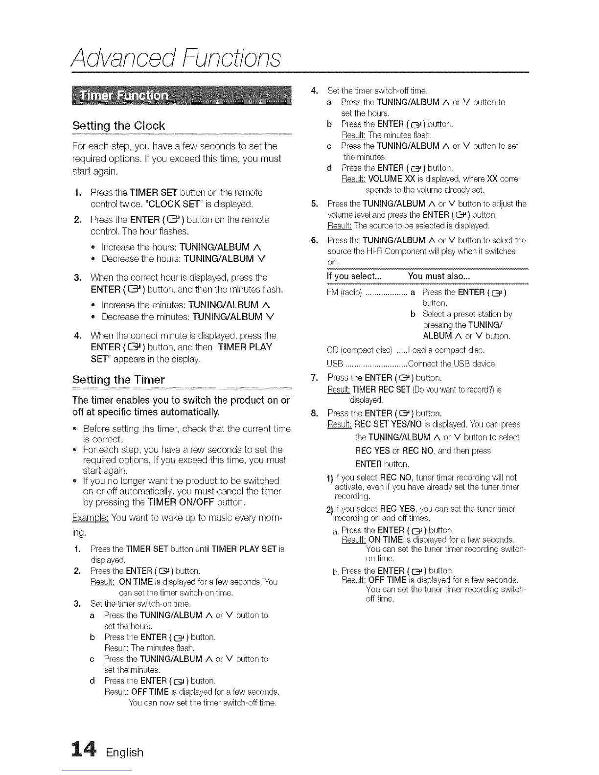 5. Pressthe TUNING/ALBUM A or V button to adjust the