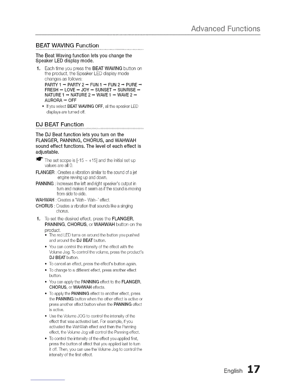 • Ifyouselect BEAT WAVING OFF, all the speaker LED
