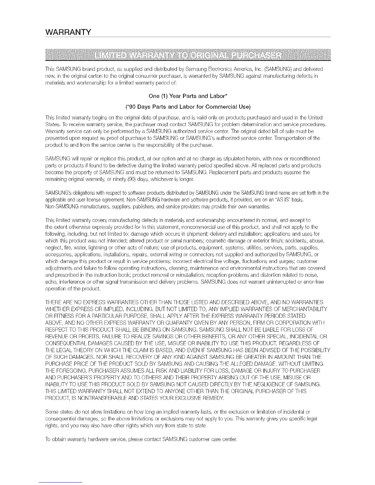 States. To receivewarranty service, the purchaser must contact SAMSUNG for problem determination and service procedures.