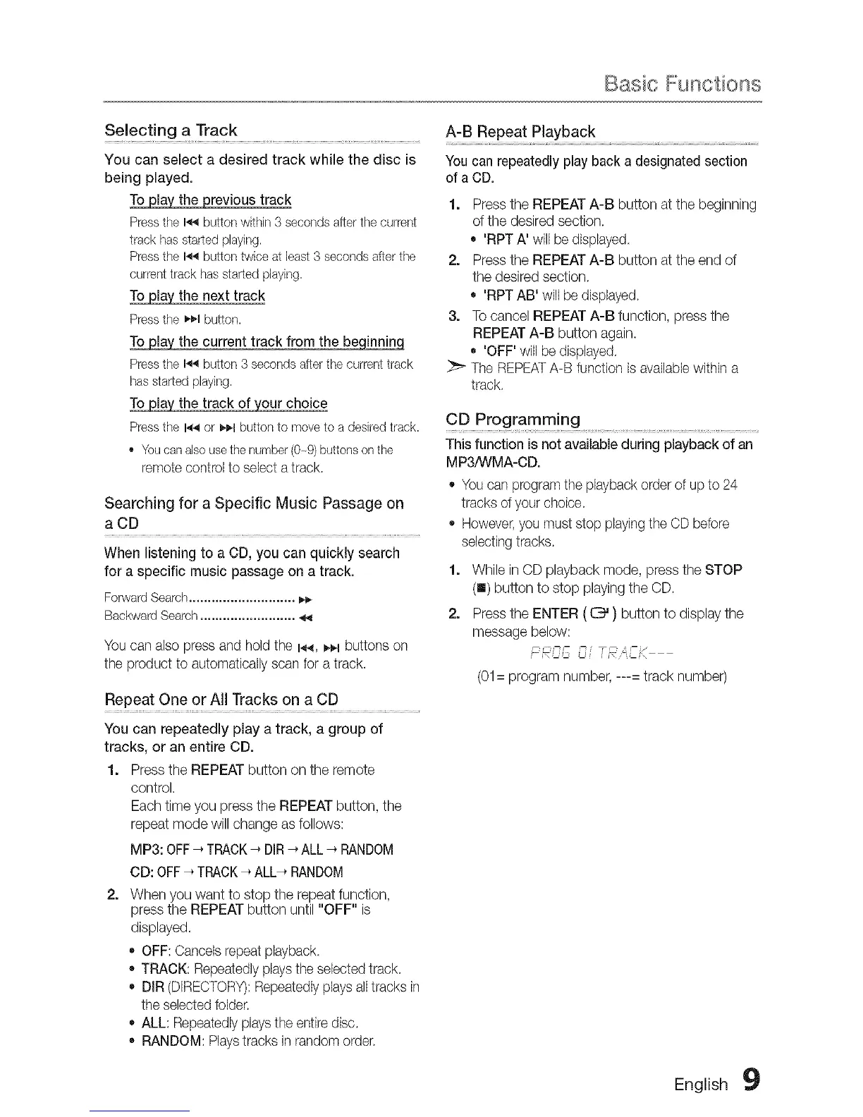Pressthe 144or _,+_1buttonto moveto a desiredtrack.