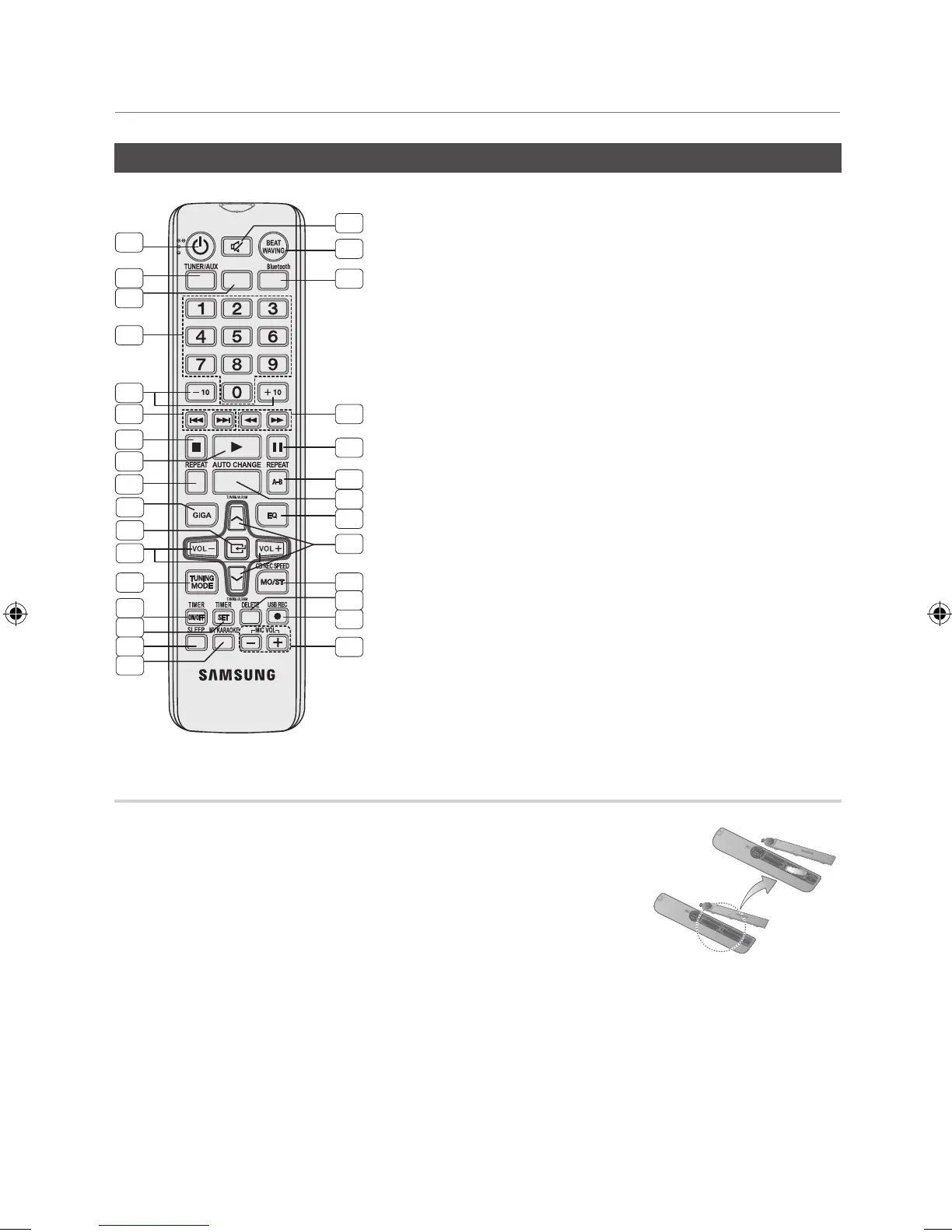 ` Place batteries in the remote control so they match the polarity : (+) to (+) and