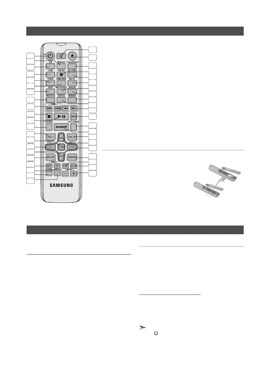 • Place batteries in the remote control so that
