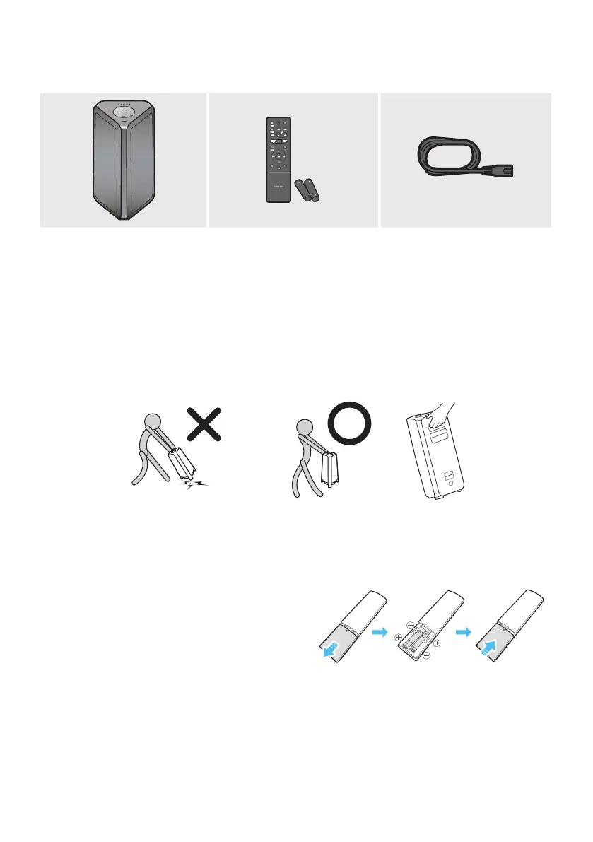 • When moving the product, do not drag or pull the product from the ground. Lift the product when