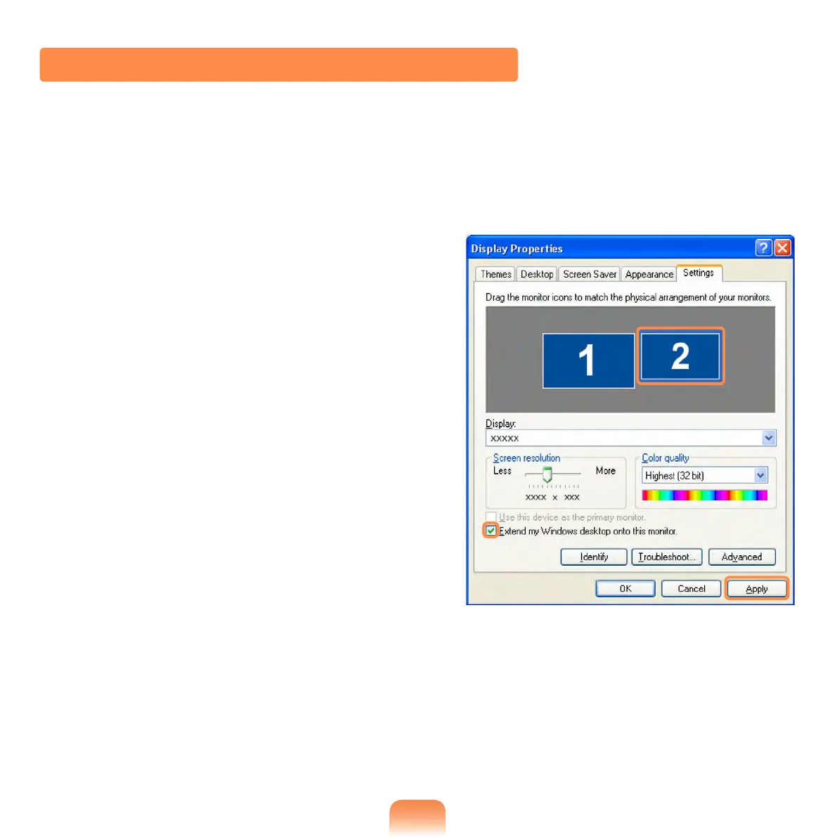 In Dual View mode, you can select the screen resolution and colour quality for each
