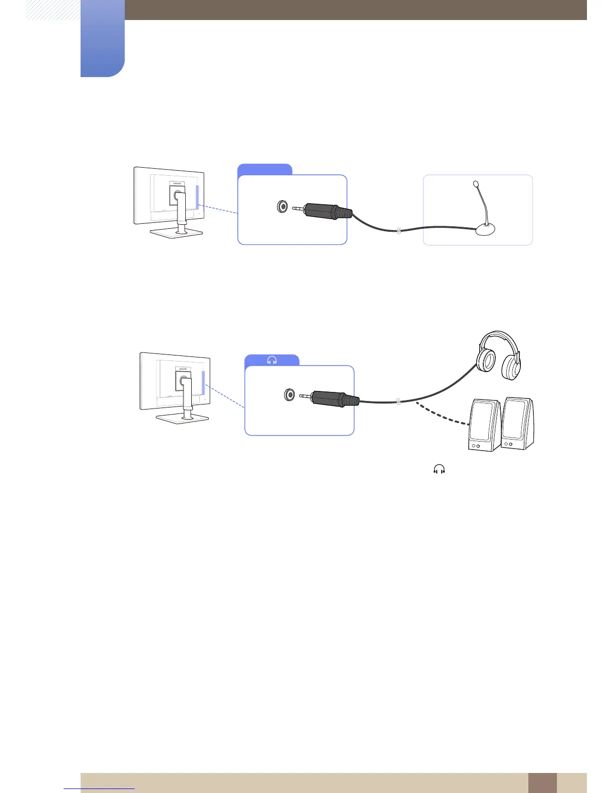 1 Connect an audio output device, such as headphones or speakers, to [ ] at the back of the