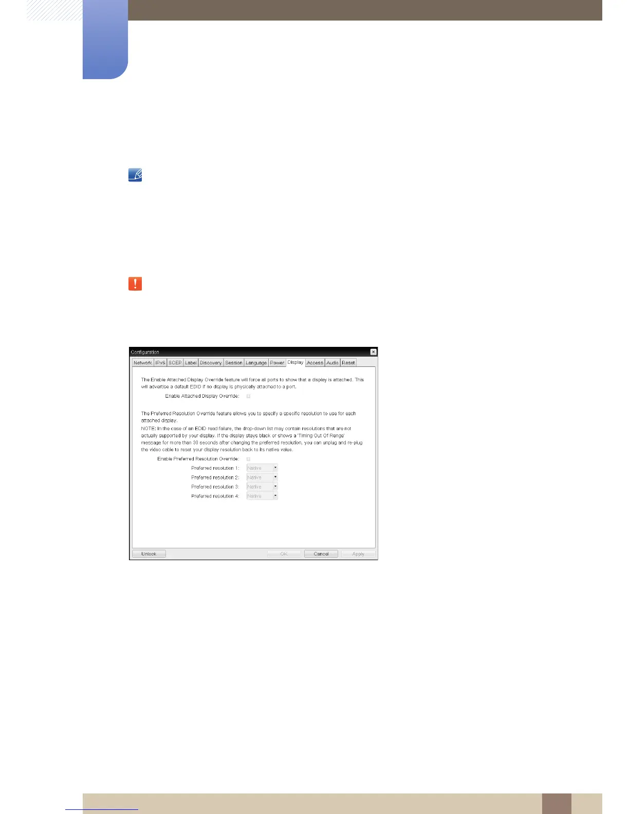 The Display page lets you enable the Extended Display Identification Data(EDID) override mode.