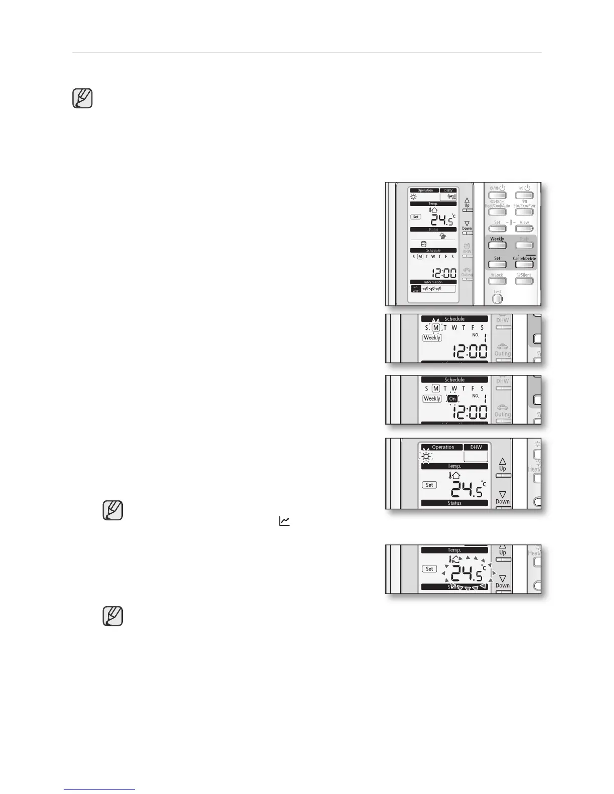 • Setting the weekly schedule is for “Cool & Heat” Mode only.