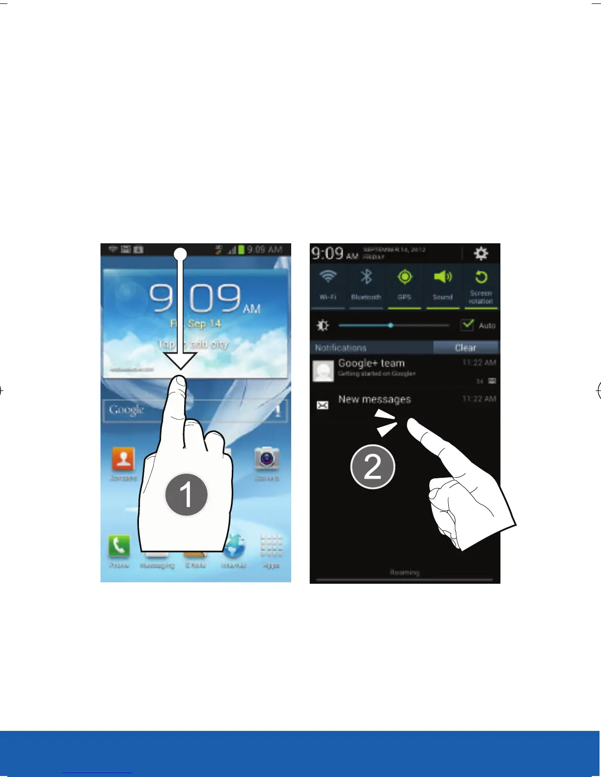 1. In a single motion, touch and drag the Status