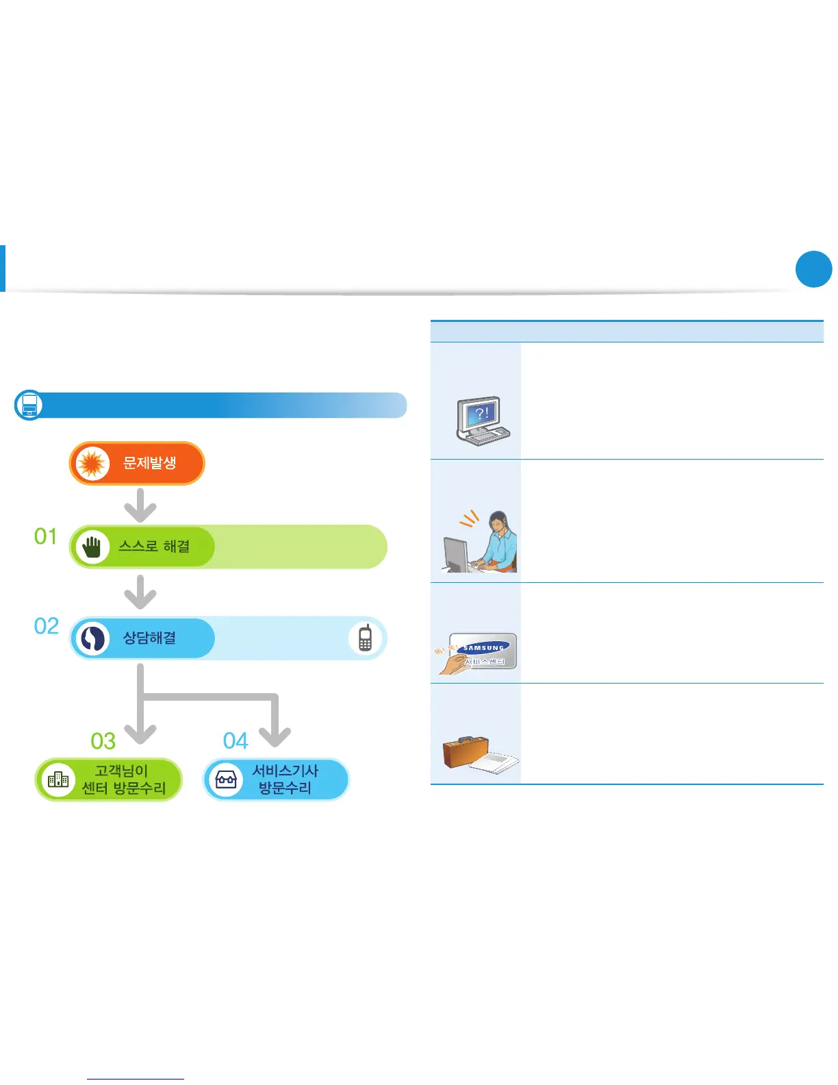 해결해 보시고, 해결이 안 될 경우에는 서비스 센터를 방문하여