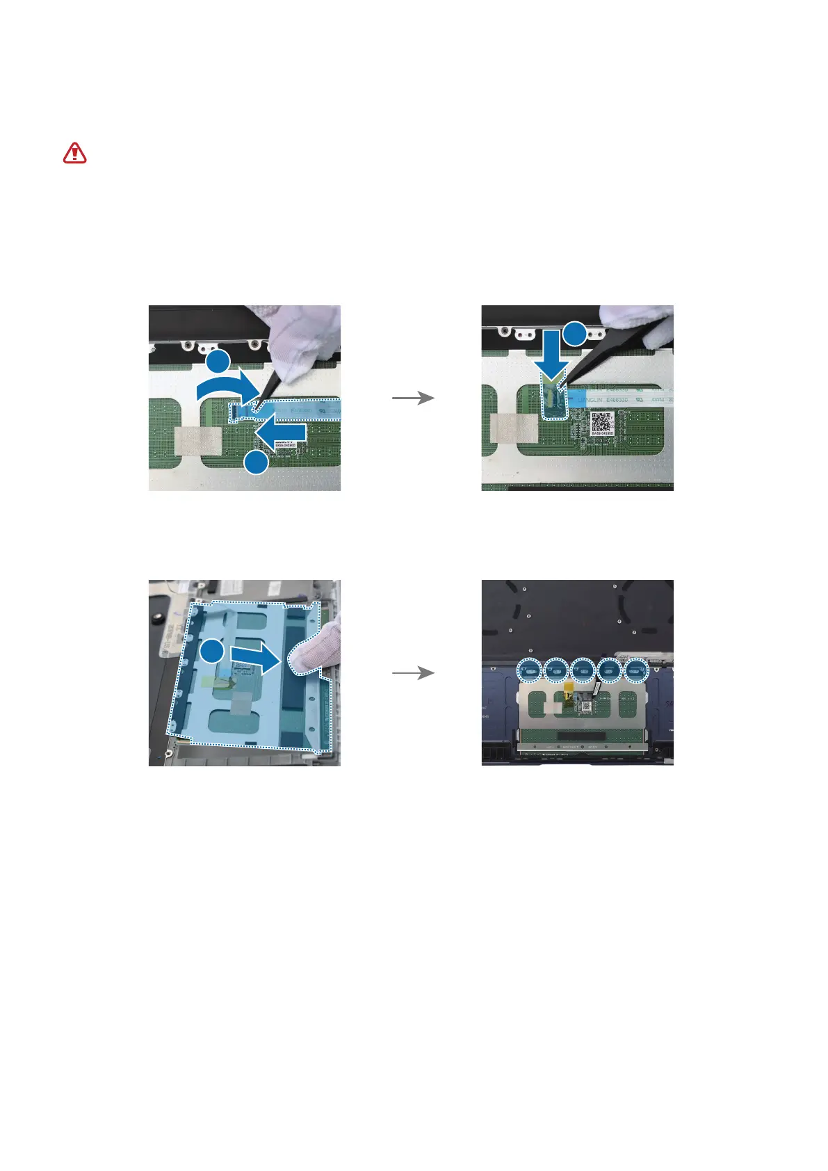 2 After assembling the touchpad module, assemble the 5 screws on the touchpad using