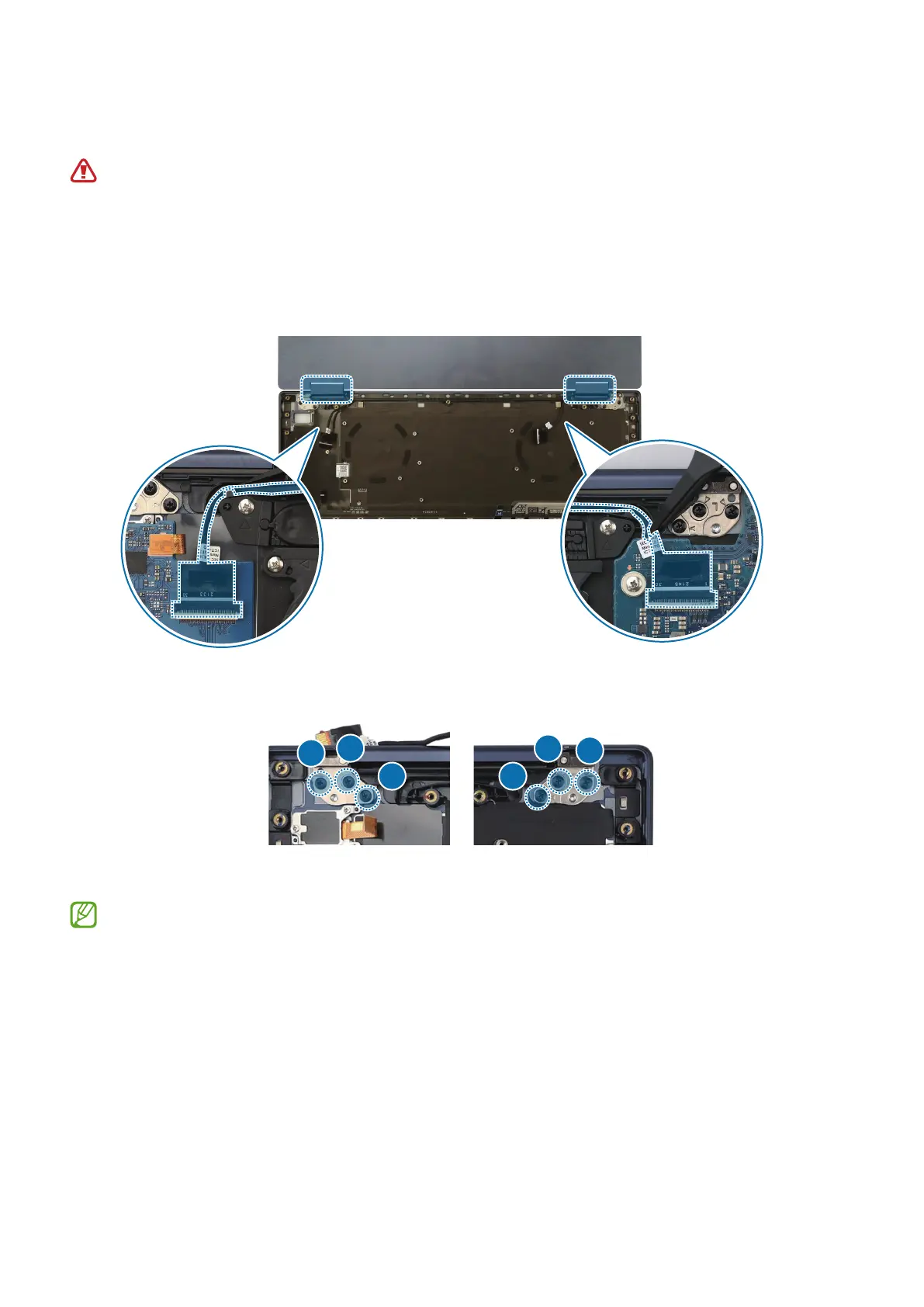 1 After aligning the screen on the case front, arrange the screen cable using the