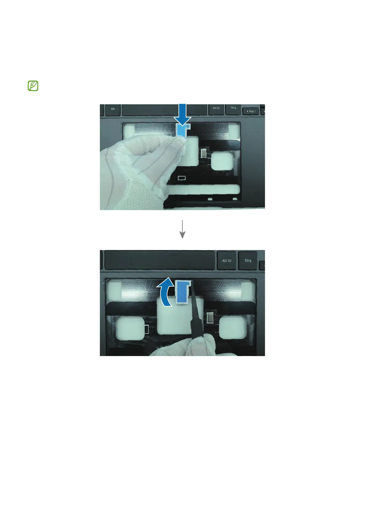 3 Attach touchpad removable tapes (BA02-03642A) in the middle of Case front