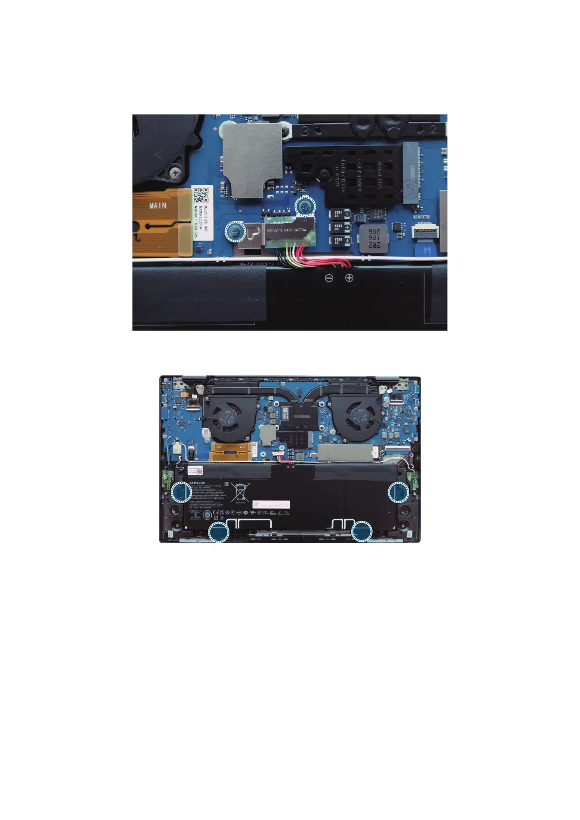4 Using a cross-head screwdriver, fasten the 4 screws on the battery.