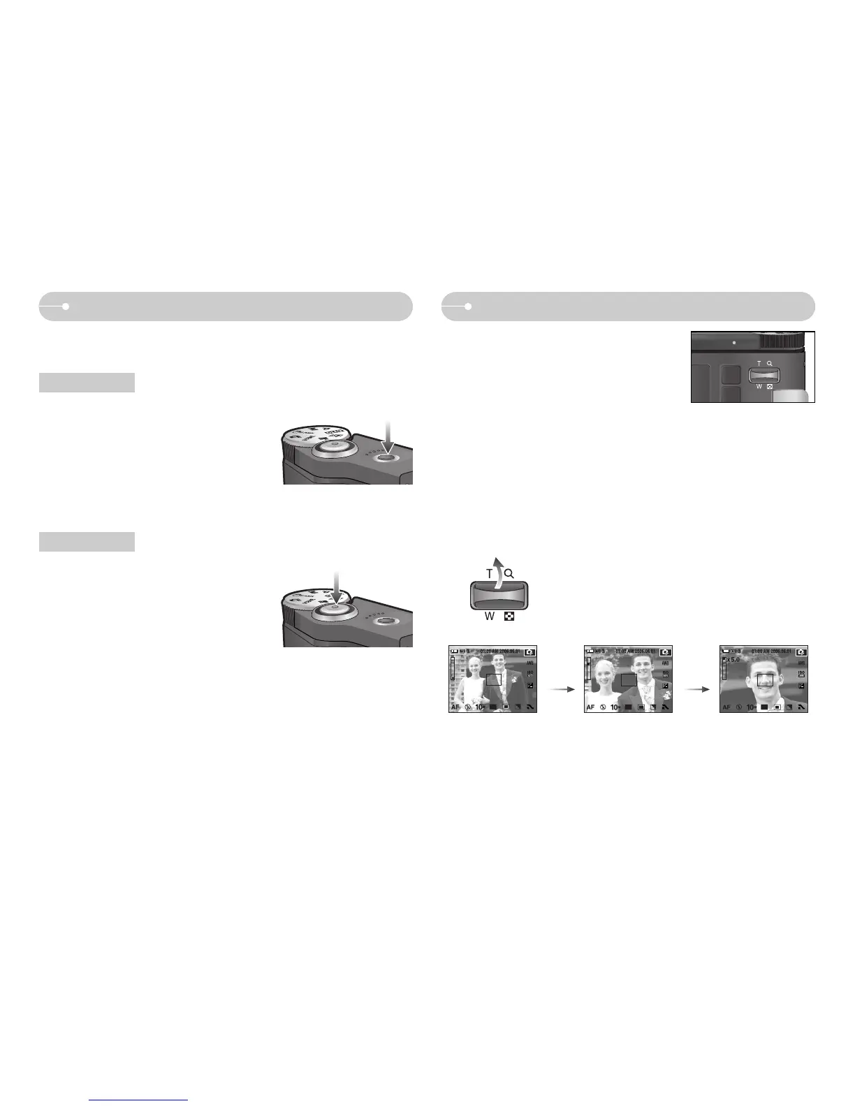 Optical zoom TELE : Pressing the ZOOM T button. This will zoom into the