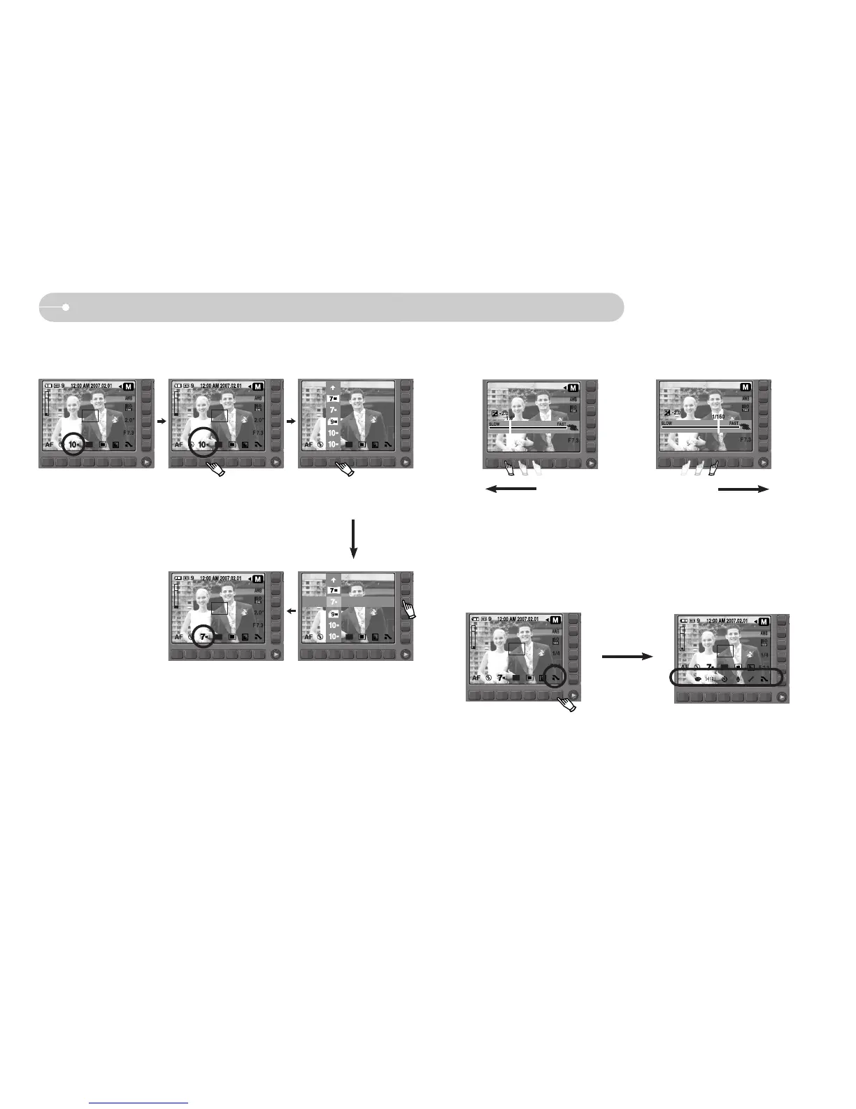 ƈ To select a sub menu, in some menus, touch the button and slide your finger to