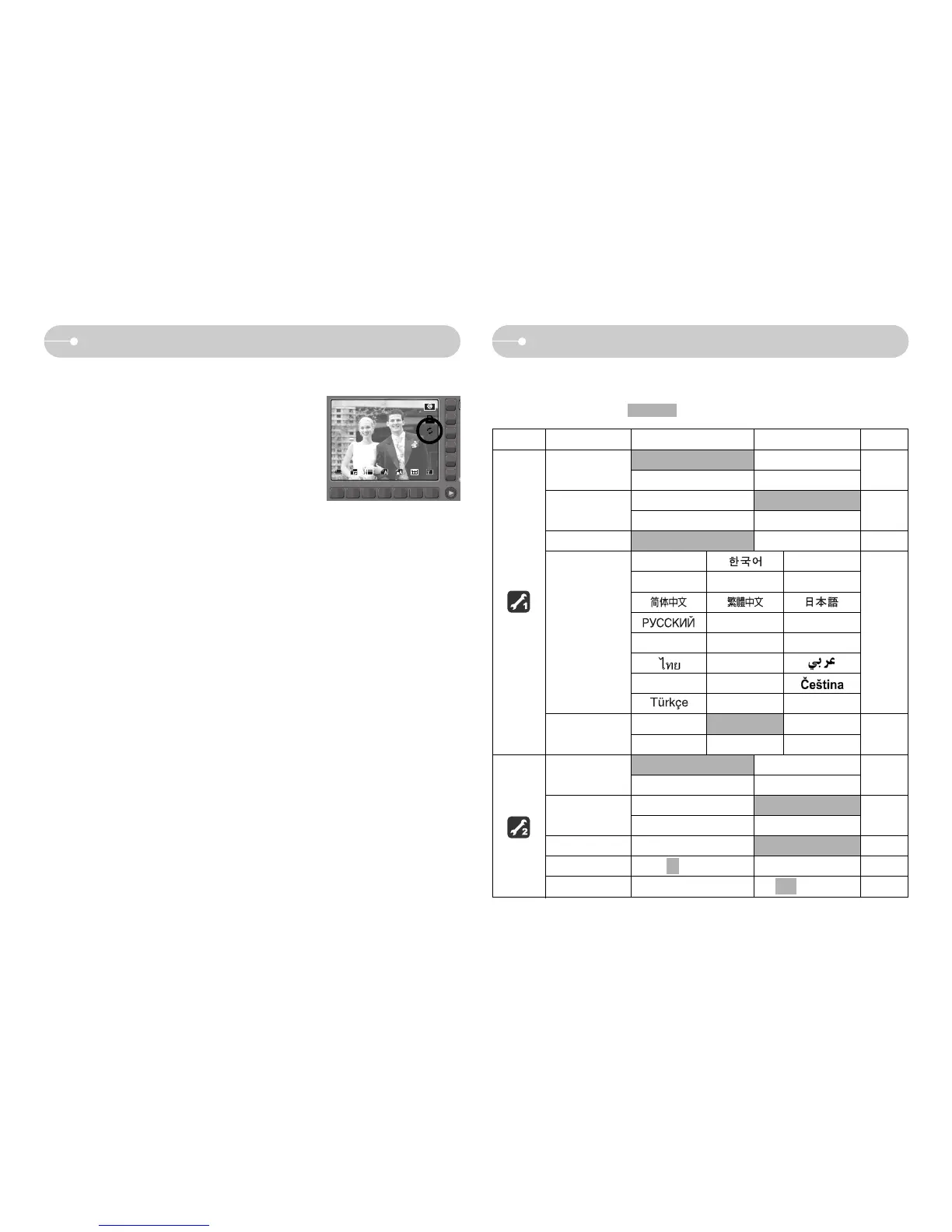 The items indicated by are default settings.