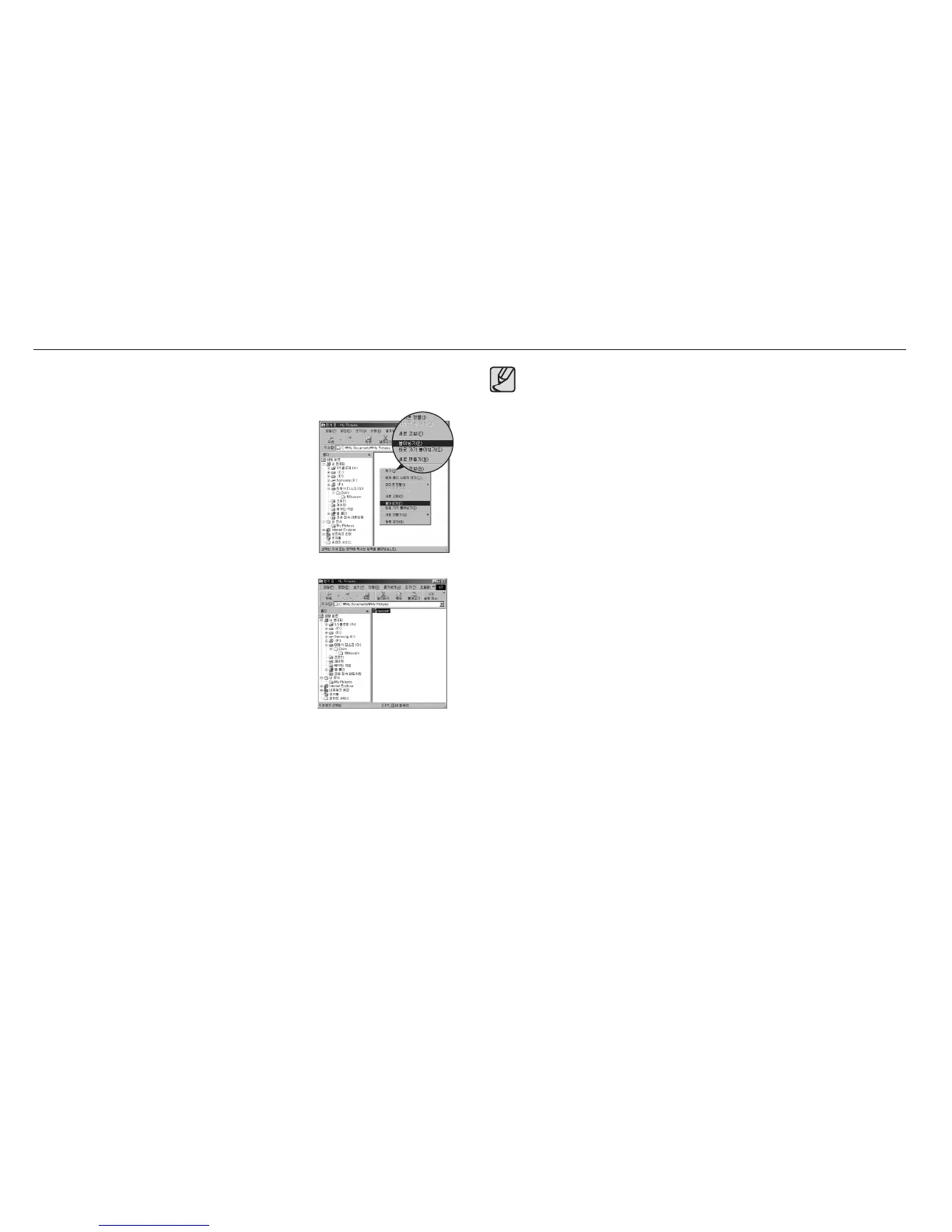 5.저장하고자 하는 컴퓨터의 폴더를 클릭합니다. ● 촬영 이미지는 이동식 디스크에서 컴퓨터의 하드 디스크로 복