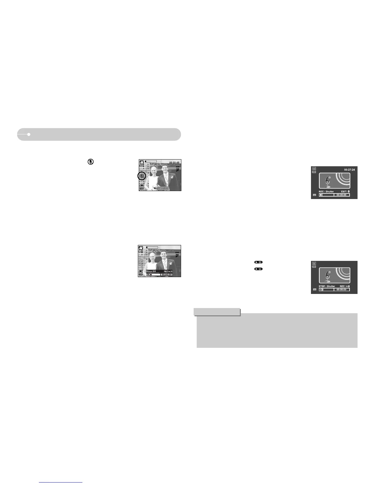● If the camera power is turned off while the voice recording is paused, the