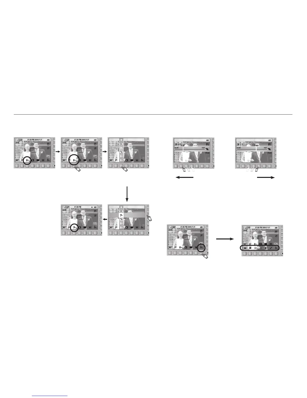 To select a sub menu, in some menus, touch the button and slide your