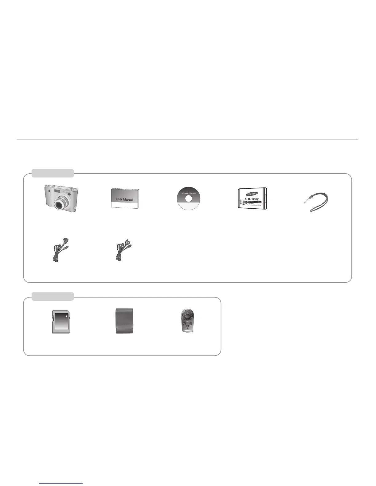Please check that you have the correct contents before using this product. The contents can vary depending on the sales region. To buy the optional equipment,