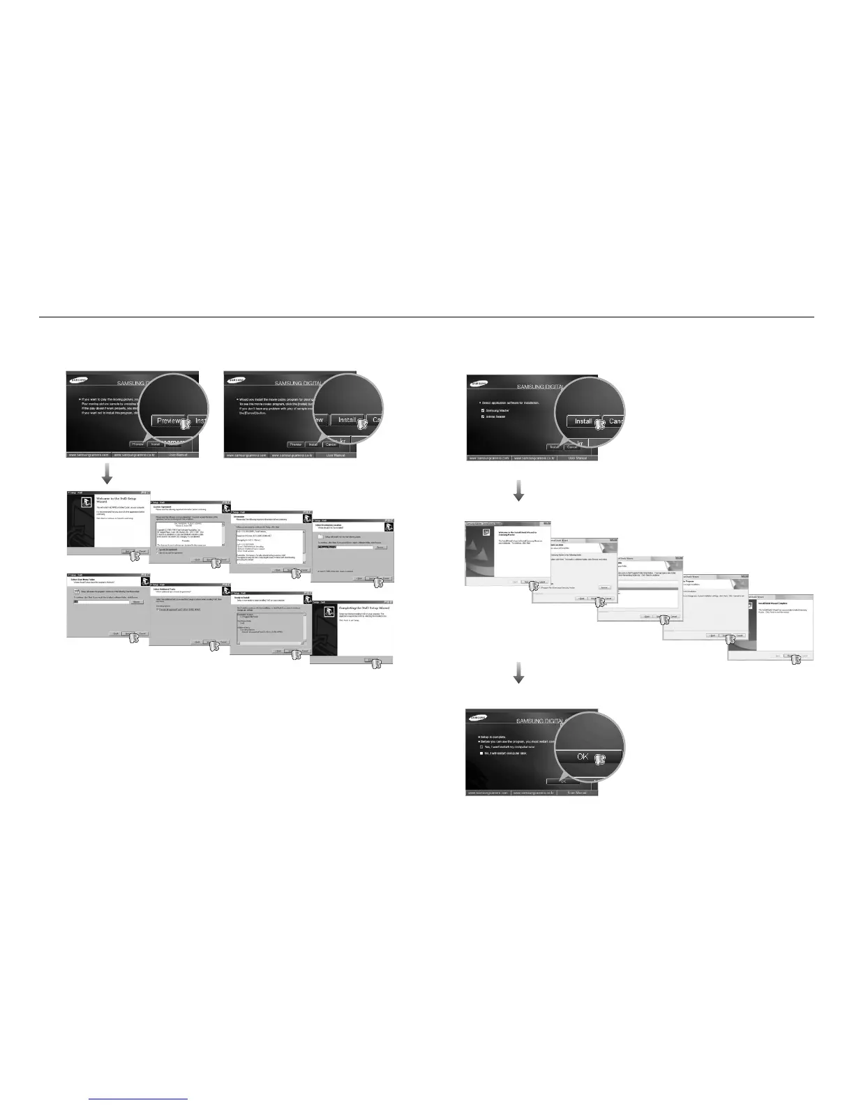 4. Install the Samsung Master in the order shown.3. To play back a movie clip recorded with this camera on the computer, install