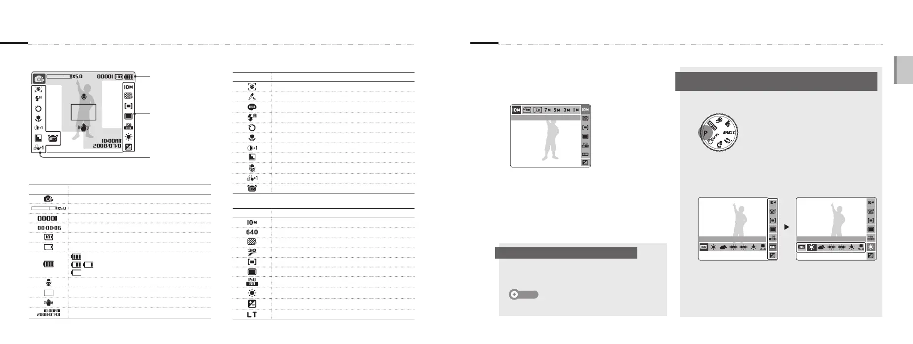 Los iconos que se muestran pueden cambiar según el modo que haya seleccionado o las opciones que haya establecido. Para establecer las opciones, pulse [E], [MENU/OK], o [Fn] y utilice los botones de desplazamiento ([e], [t], [w], [r]).