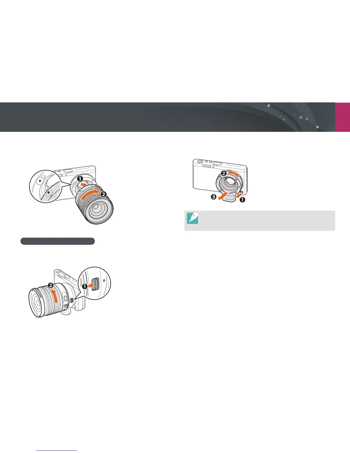 Then, rotate the lens as shown in the illustration until you hear