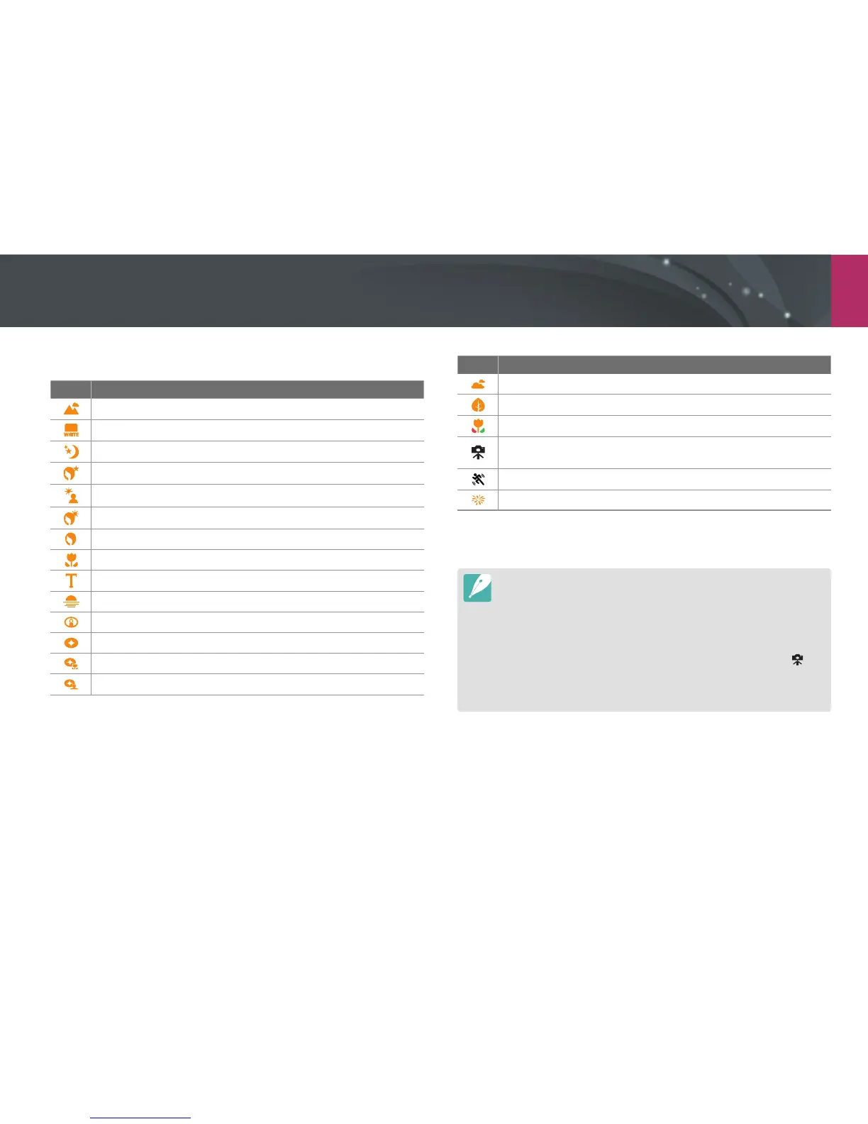 The camera may detect dierent scenes, even the same subjects, depending
