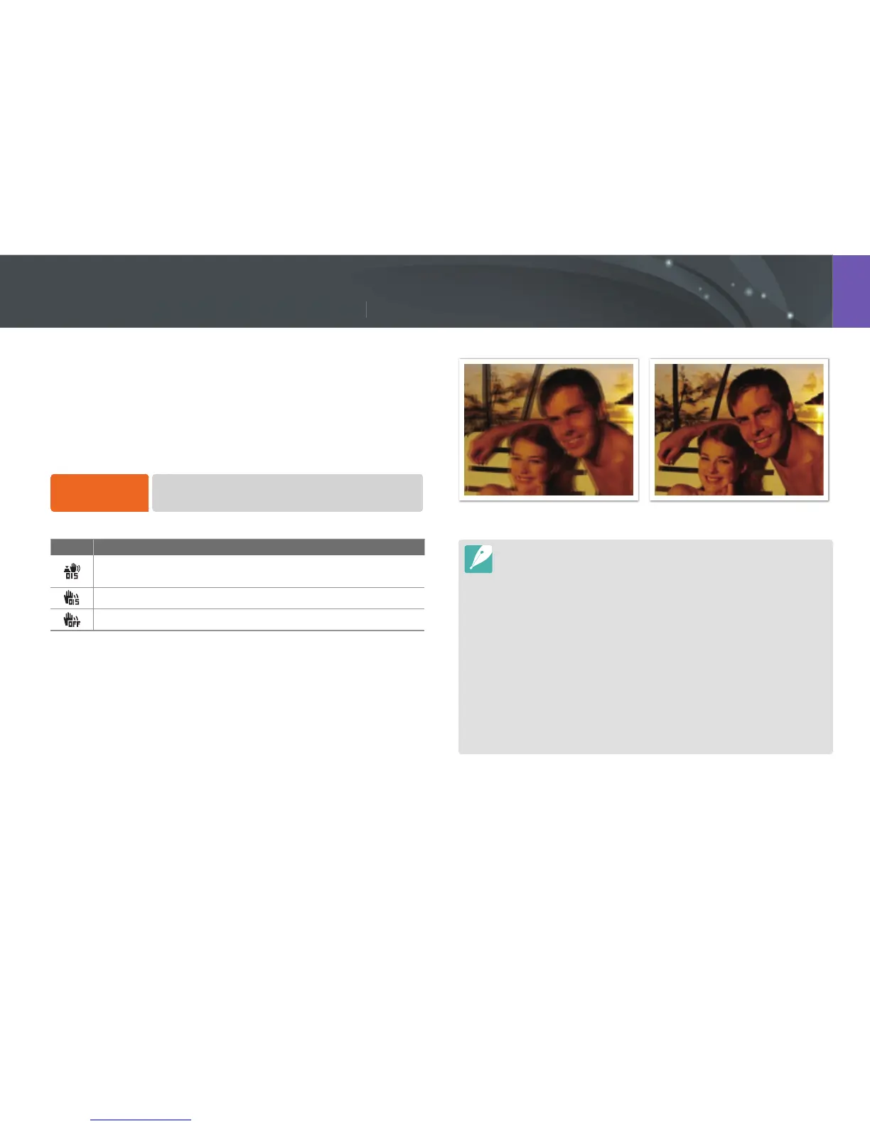 Use the Optical Image Stabilization (OIS) function to minimize camera