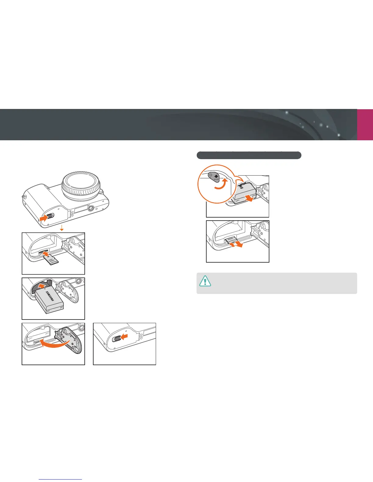 Inserting the battery and memory card
