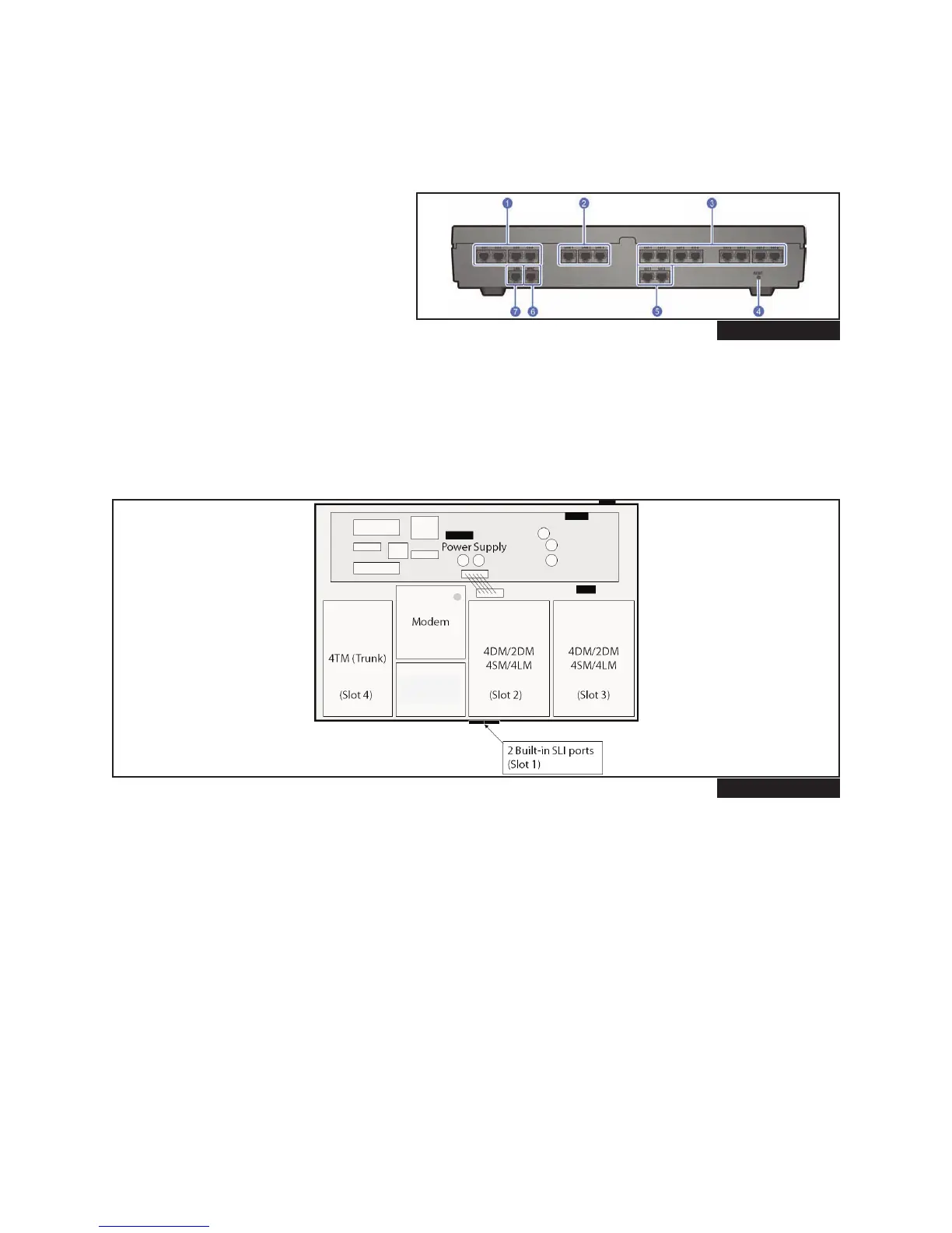 Figure 1.3 indicates the physical card slots in the OfficeServ 7030. These physical card slots support the various
