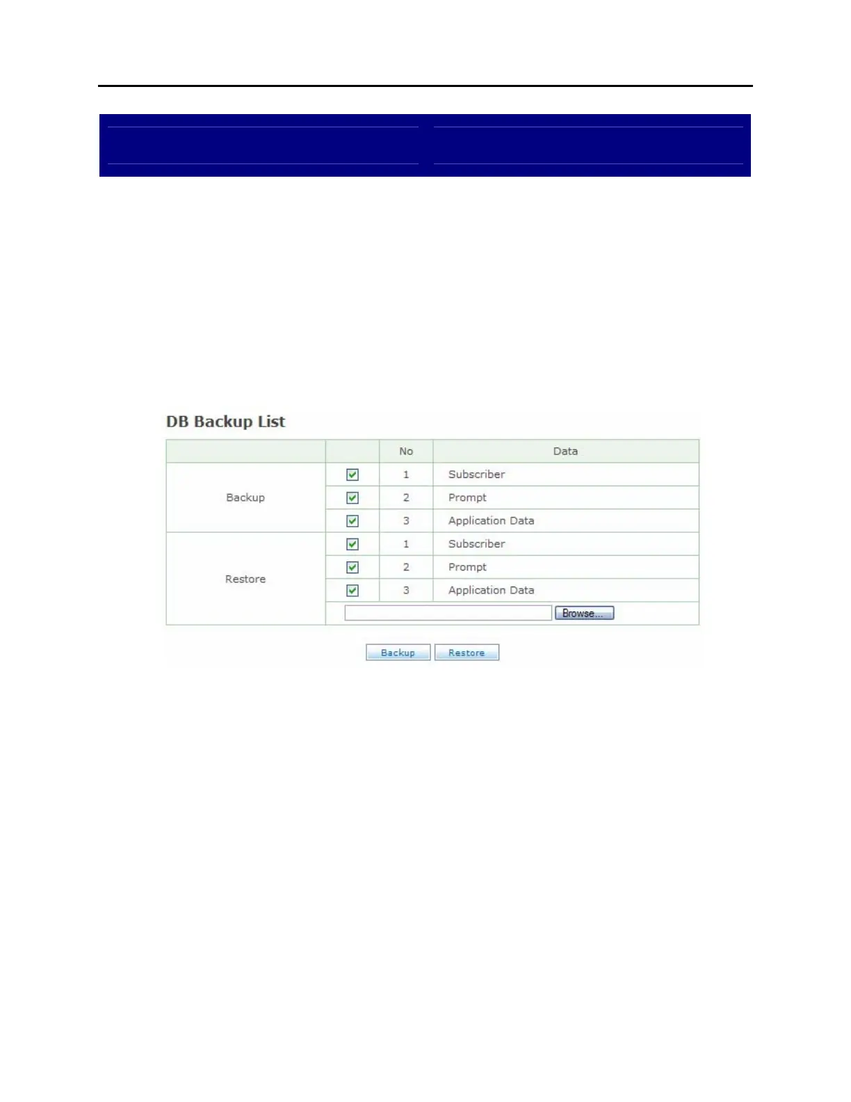 automated attendant programming via the DB Backup List screen. Users can