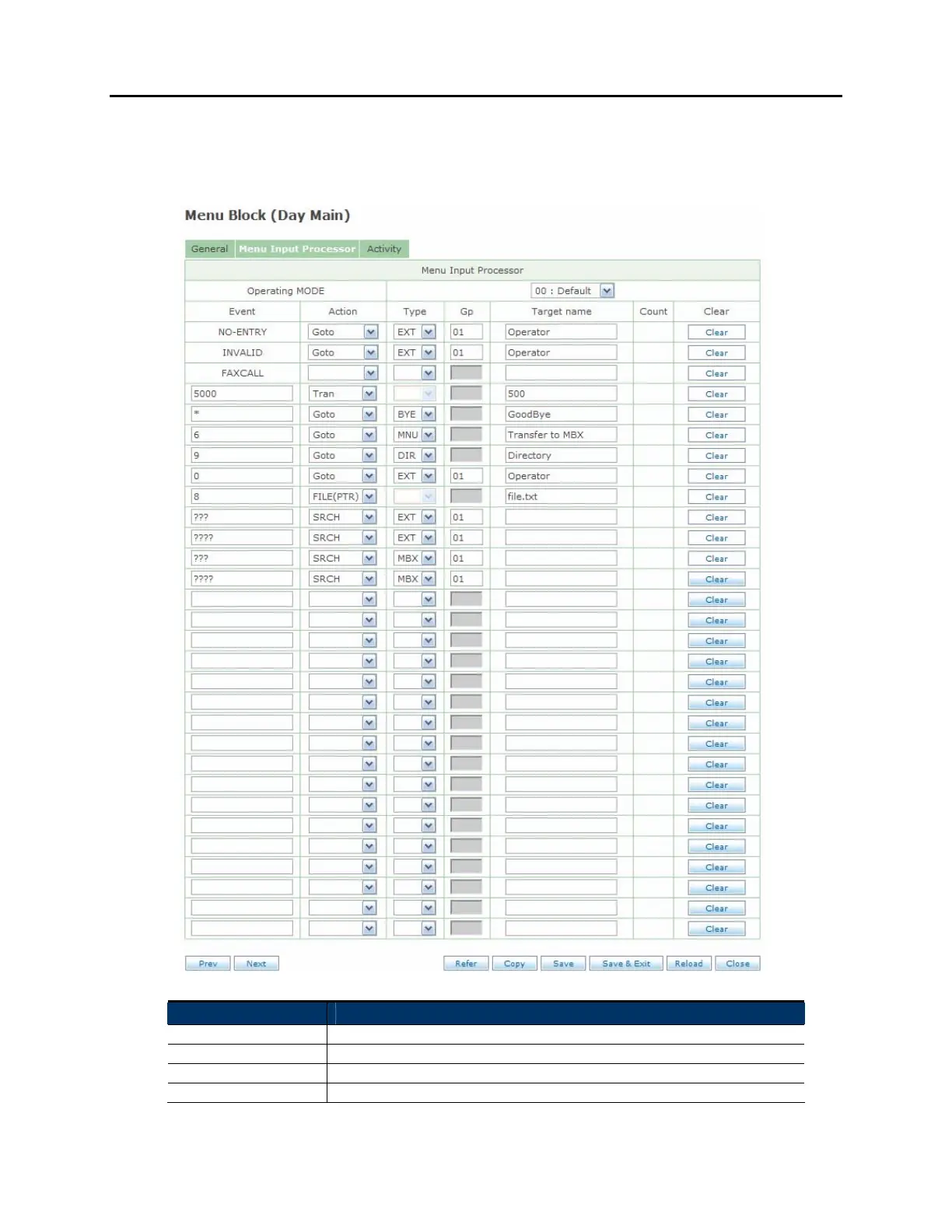 MENU INPUT PROCESSOR SCREEN: